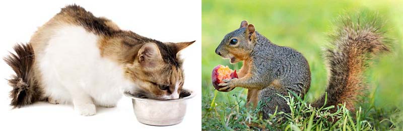 Pondering… which animal is more advanced on the evolutionary scale… a cat, or a squirrel. A cat stands (or squats) on four paws to eat, only with its mouth, like most other quadrupeds. A squirrel, on the other hand, sits on its haunches and puts food into its mouth with its front paws (dare I say “hands”?). Primates (including humans), arguably one of the most advanced animals on the evolutionary scale, also put food into their mouths with their hands.