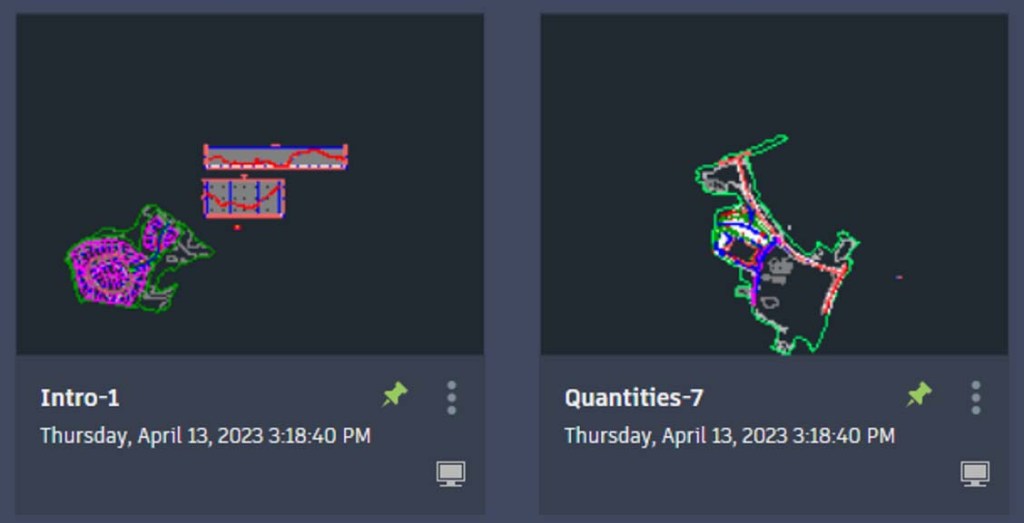 This an example from my job. Every day I open the AutoCAD program Civil 3D, and this captured image below is a small part of the splash screen that is displayed on my monitor. These are a couple of the default drawings that come with Civil 3D.